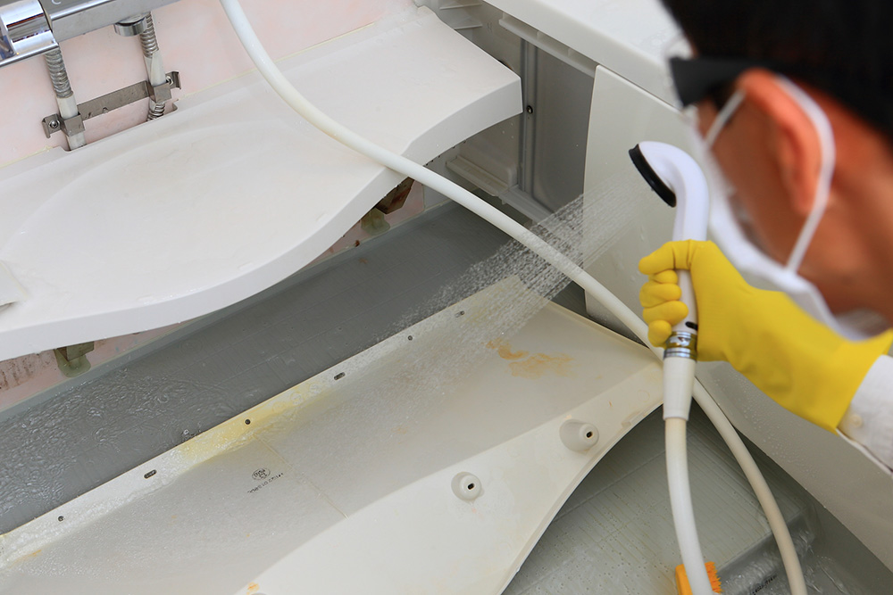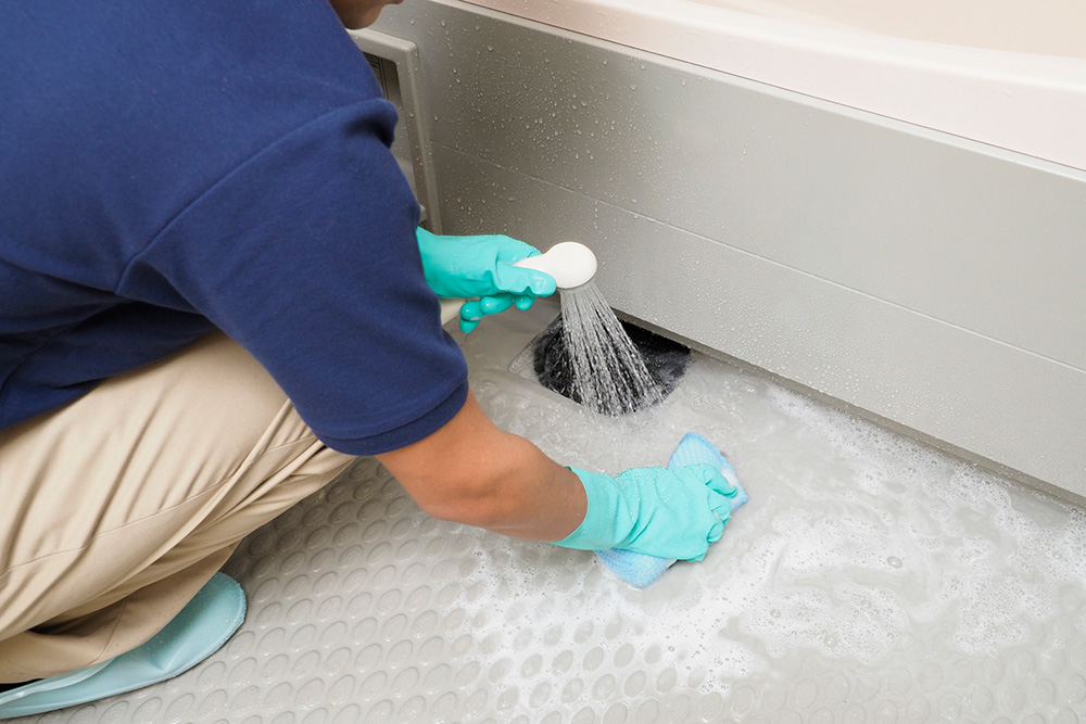 排水口内部、換気扇の奥、ゴムパッキンのカビなど、普段見えない箇所も丁寧に清掃します。
